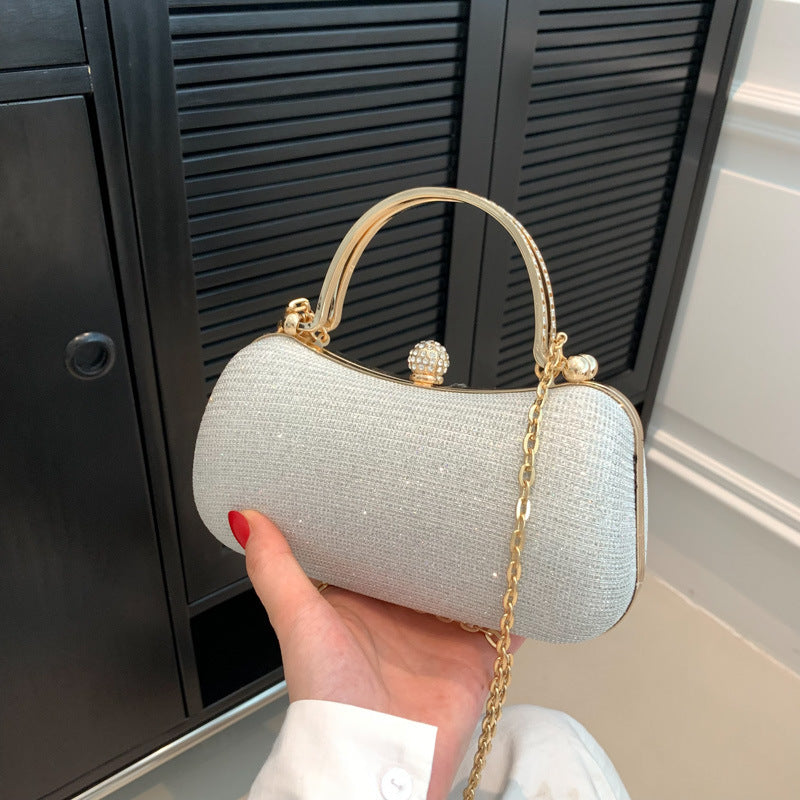 This dazzling rhinestone clutch is the perfect accessory for a night out. Its sparkling design and elegant silhouette will make you shine. Features: Rhinestone embellishments Gold-tone hardware Detachable chain strap for versatility Compact size for essentials Perfect for formal occasions Best Use: Ideal for weddings, parties, or other special events.