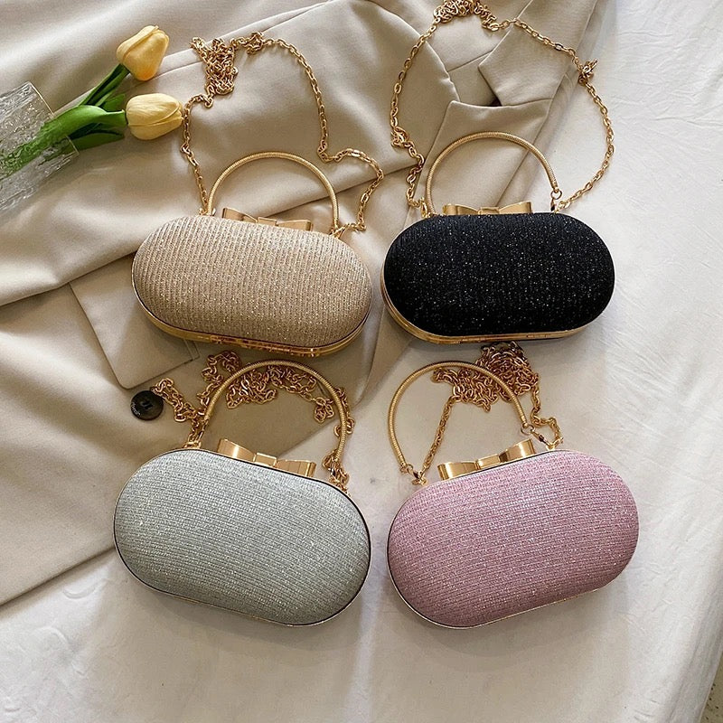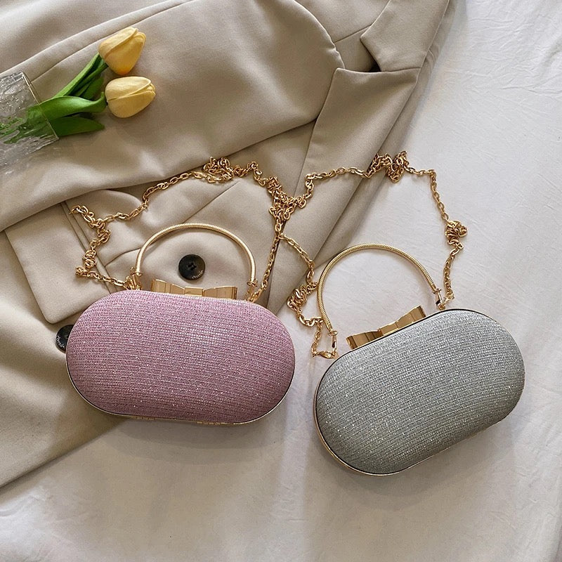 ZYB164 Shiny Glitter Evening Bag Sweet Bowknot Decor Clutch Purse